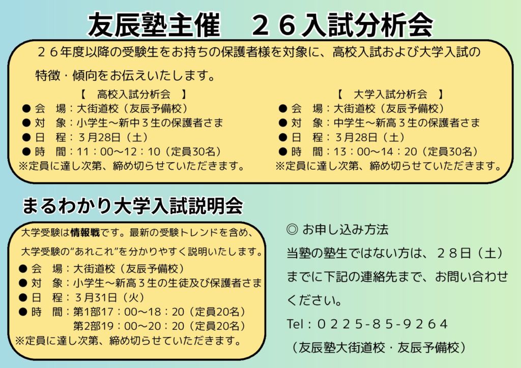 また、地域情報誌「んだっちゃ」などに新年度のご案内や新規入塾特典などの情報が掲載されていますので、ぜひそちらもご確認ください。